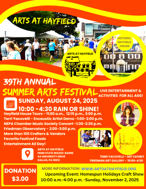 1:30-2:30 p.m.-NEPA Chamber Music Society Concert-Hayfield House -Visit the NEPACMS website acms.org